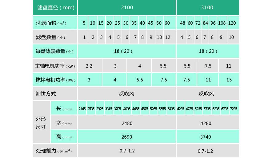 連云港博云礦山機械生產的PG系列盤式真空過濾機 (1)扇形濾板脫水孔分布均勻,孔率合理,筋條尺寸大,由高強度工程塑料制成,壽命提高了2-3倍。 (2)濾液管過濾數面大,分配頭腹腔容積大,提高了抽氣率和濾液排放效果。 (3)耐磨錦綸、單或復絲濾布使脫餅率高且不易堵塞,使用壽命長。 (4)多點干油泵集中多點自動潤滑。 (5)濾布自動清洗裝置,保持了其良好的脫水效果。 (6)臥式強制高速攪拌、軸端采用橡膠及石墨盤根和水壓差三重密封不漏漿。 (7)主傳動無級變速,依物料的濃度及流量調節(交流調速電機或變頻器),以求達到理想的工作效果 。 (8)每盤由20片扇形板組成,加強了過濾過程控制,成餅厚度均勻。 (9)磨擦片采用特制耐磨硼鑄鐵,剛柔相濟密封佳,使用壽命達到十年以上。 (10)濾液管為高強度耐磨陶瓷復合鋼管,提高壽命10倍以上。 (11)濾液管與濾扇接口去掉下法蘭,采取模具定位直接焊接,減少了90%可能的漏氣點。